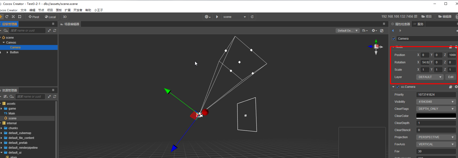 重现方式:舞台放一个按钮,修改Camera的Projection 为 透视投影PERSPECTIVE,再修改x,y。保存。编辑器右下角预览有效,web查看无效。关闭编辑器,再打开编辑器查看Camera属性,x,y自动变为0