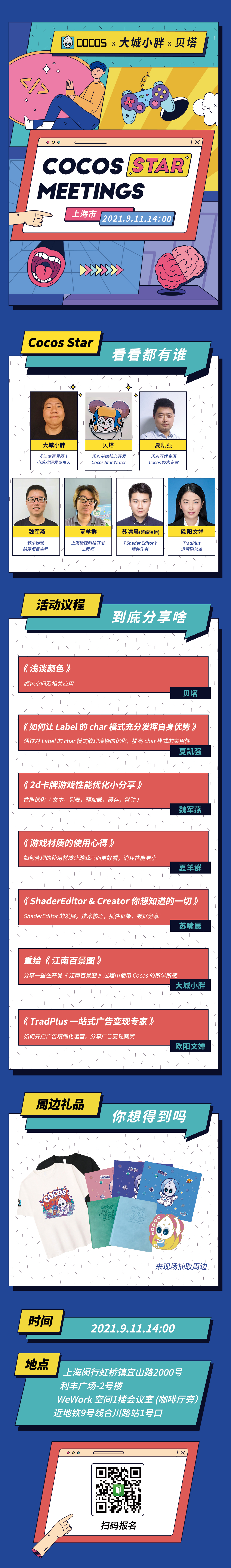 明天下午(9月11日)14:00,Cocos Star Meetings 「上海站」将在上海闵行利丰广场-2号楼 WeWork 空间1楼会议室正式开始。