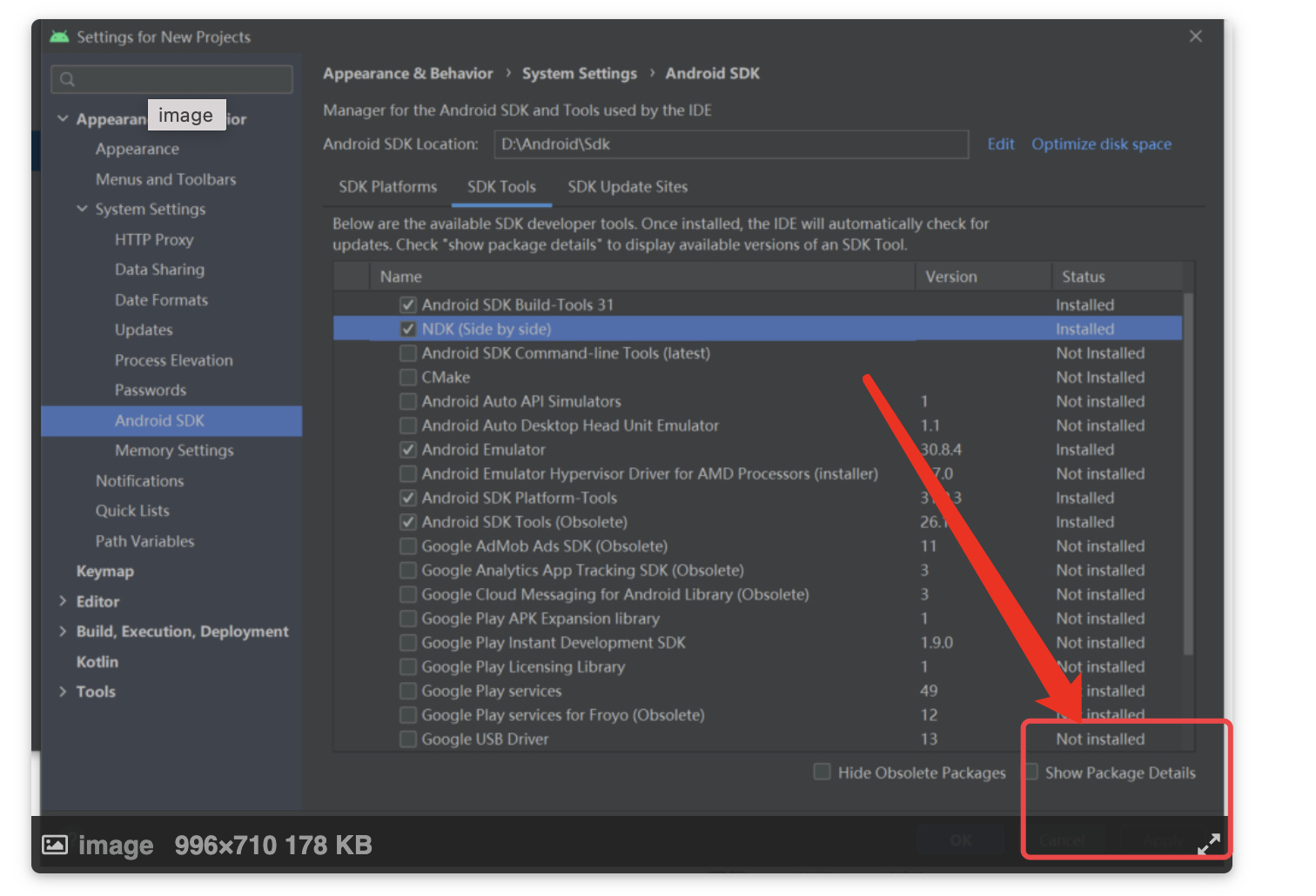 我又打开SDK manager看了下,发现下面的情况