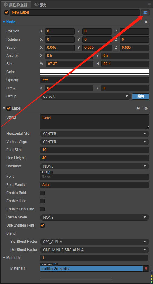 你将label设成3d节点了吗