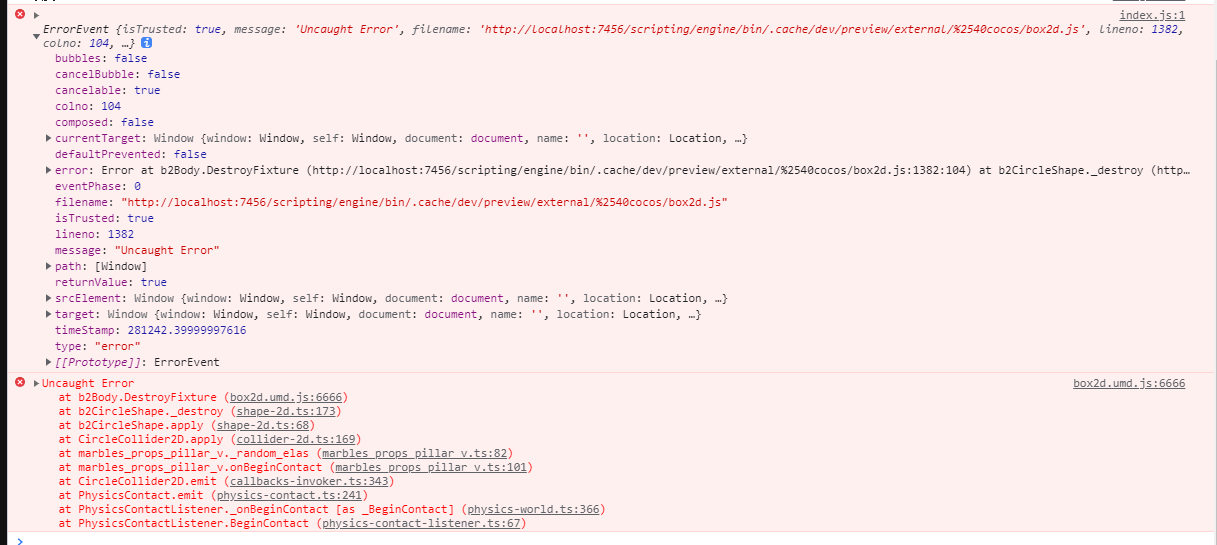 2.x引擎报错还可以自己看看是什么错误,现在的都看不了了,只打印一个error,对于用户有啥用?能知道是哪儿的错吗?一进内部代码就位置错乱,我觉得配图很合适