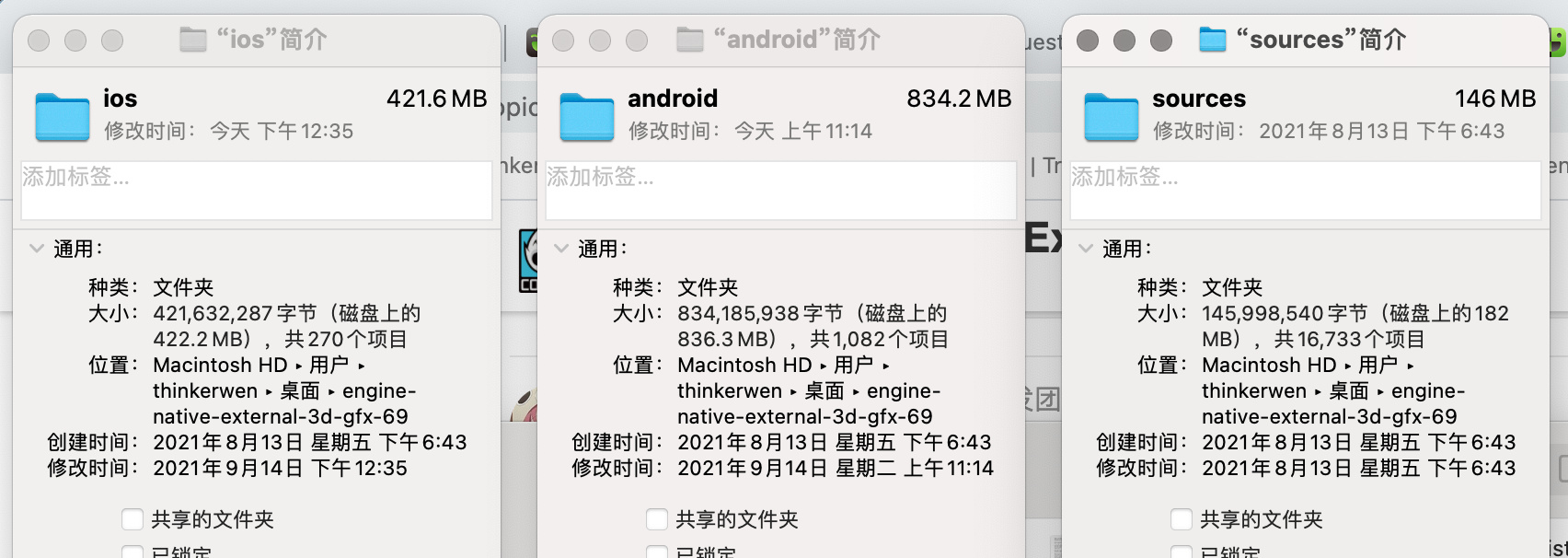如果只用到Android或iOS, 可以把win/mac/ohos平台相关文件夹移除. Sources内存放的是需要编译的一些通用库. 要移除的话可能涉及到Cmakelists的更改, 建议最好不要移除