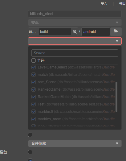 之前是未全选的情况下,不能选择首场景和自定义选择打包场景,难道bundle内的场景不能剔除吗?