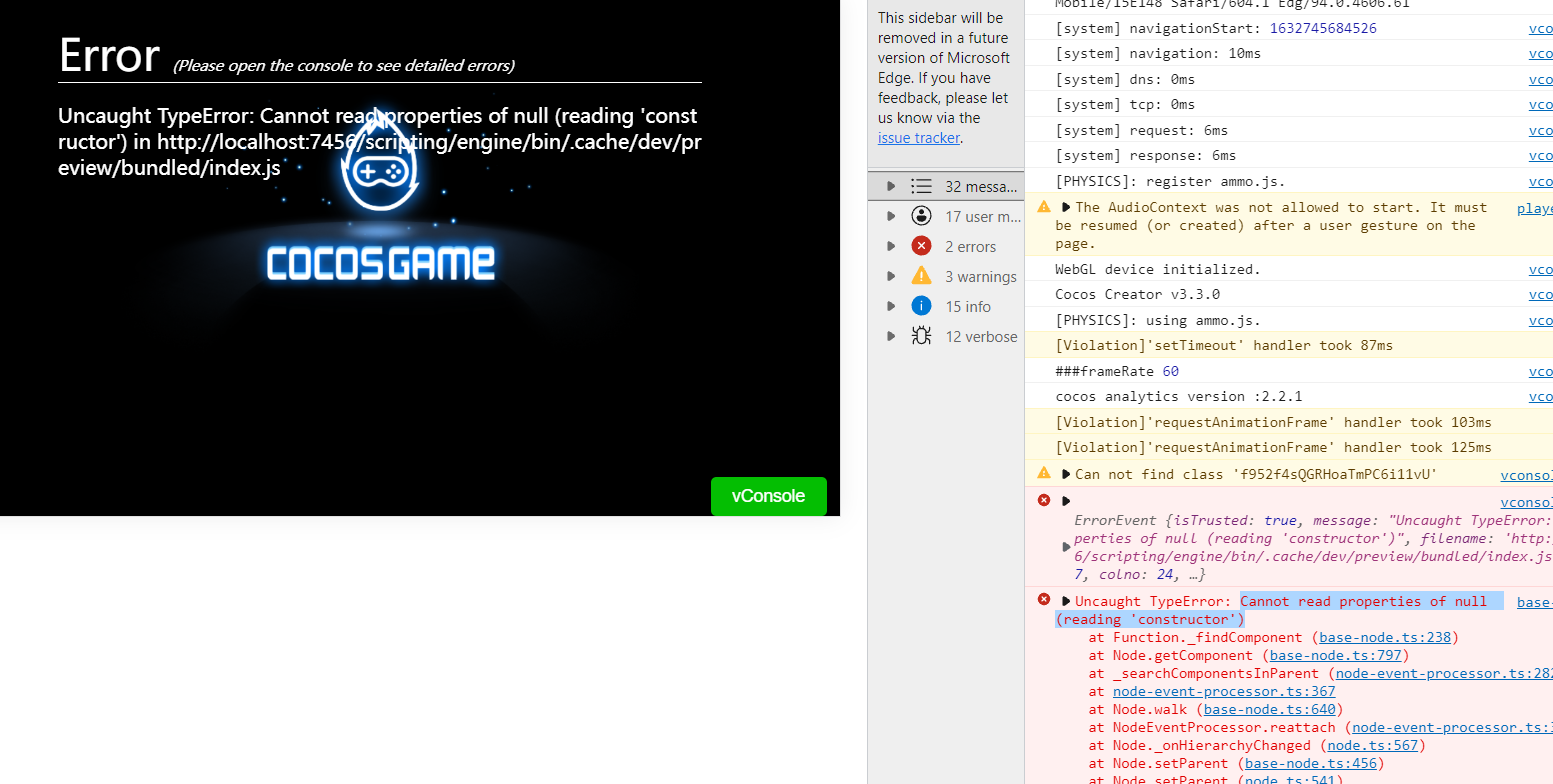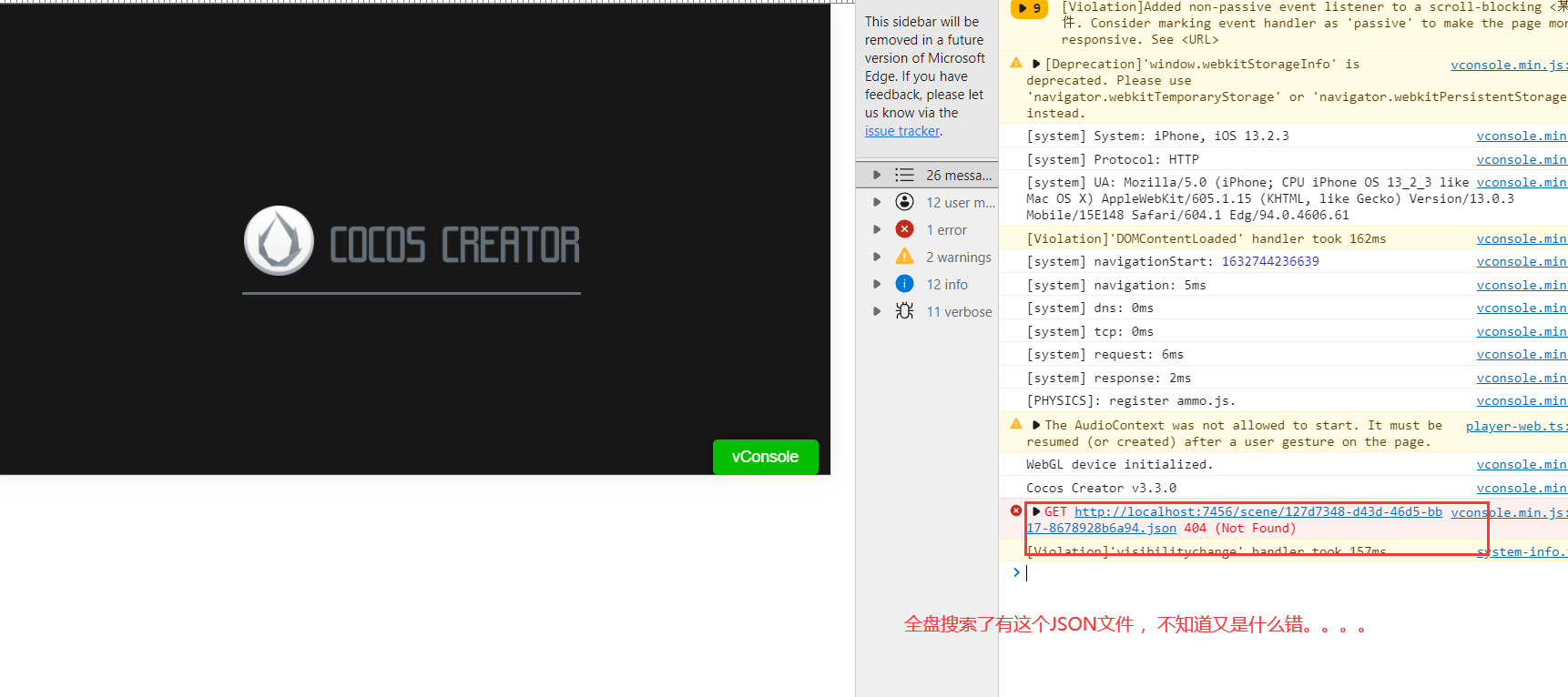 下面这个截图是换了一台电脑同样的代码,报的错误又不一样了,没有那台电脑N多的红色报警,这个到是只有一个404,就是不启动了。。。这个CCC3.3感觉好多问题一样