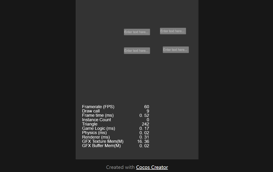 在场景中只添加了4个EditBox,然后在浏览器上运行,帧率才10几
