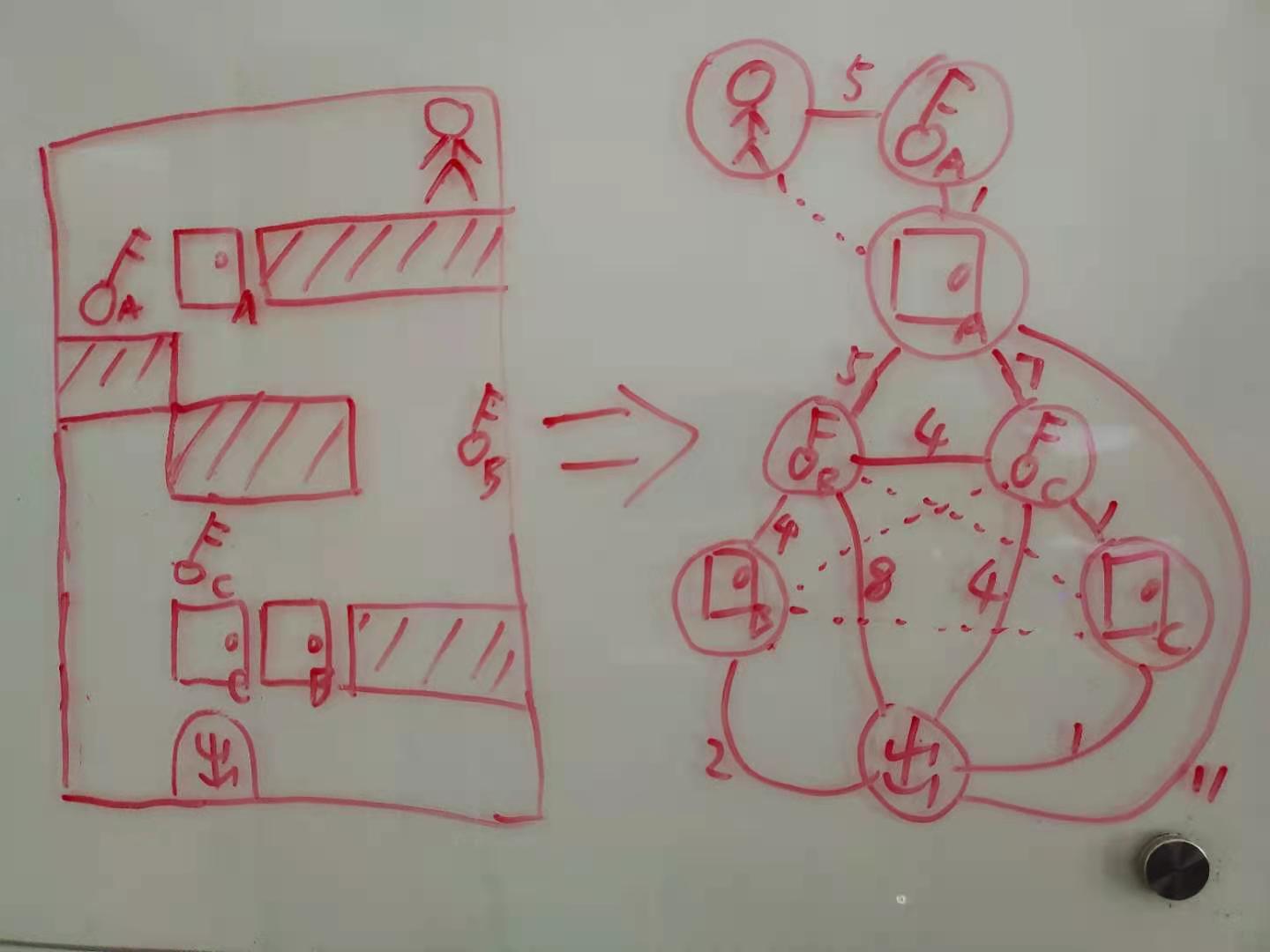 2.不存在先找到门,再去找钥匙的情况,路上来回的操作必定导致路径的延长
