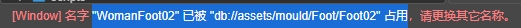 重名会提示 名字 “xxx” 已被 “db://assets/modules/xxx” 占用,请更换其它名称。