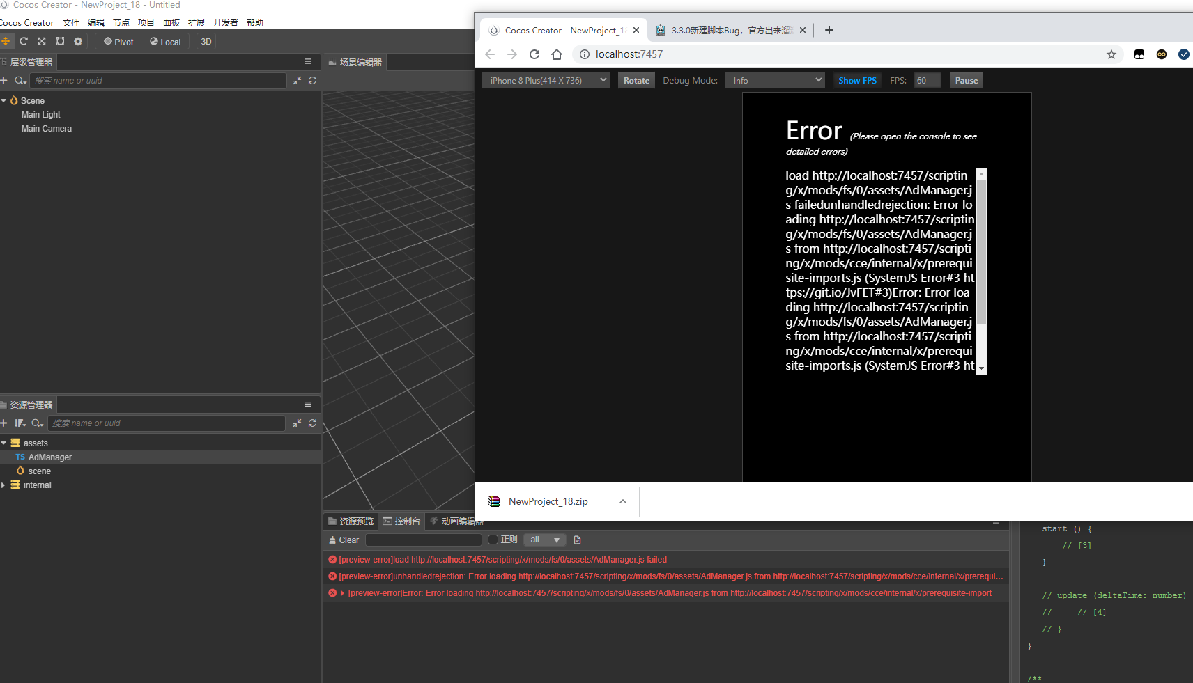 重现方式:新建以AdManager命名的ts脚本,再点击预览打开web就会出现