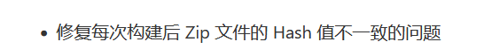 246的修改列表里有这一项,修复每次构建后 Zip 文件的 Hash 值不一致的问题 ,请给个详细的解释 这个是说什么 这个ZIP是哪里的 谁维护的?和工具是个什么关系?