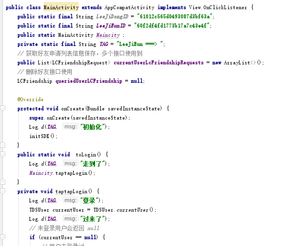 是啊,但是就因为没有启动,oncreate没有调用,maincity是空,所以调不到任何方法,静态方法中,this指向不明确,所以也没办法在toLogin中使用maincity=this,也很无奈