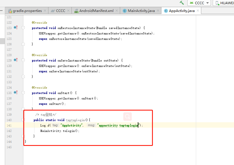 简单试用,那就把Tap的代码放在AppActivity的onCreate中调用