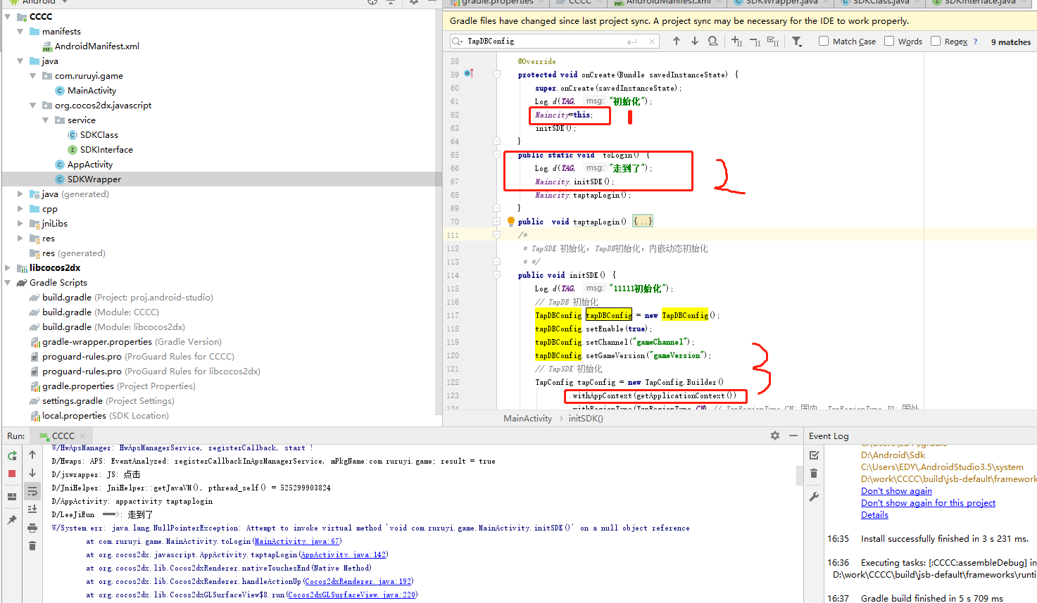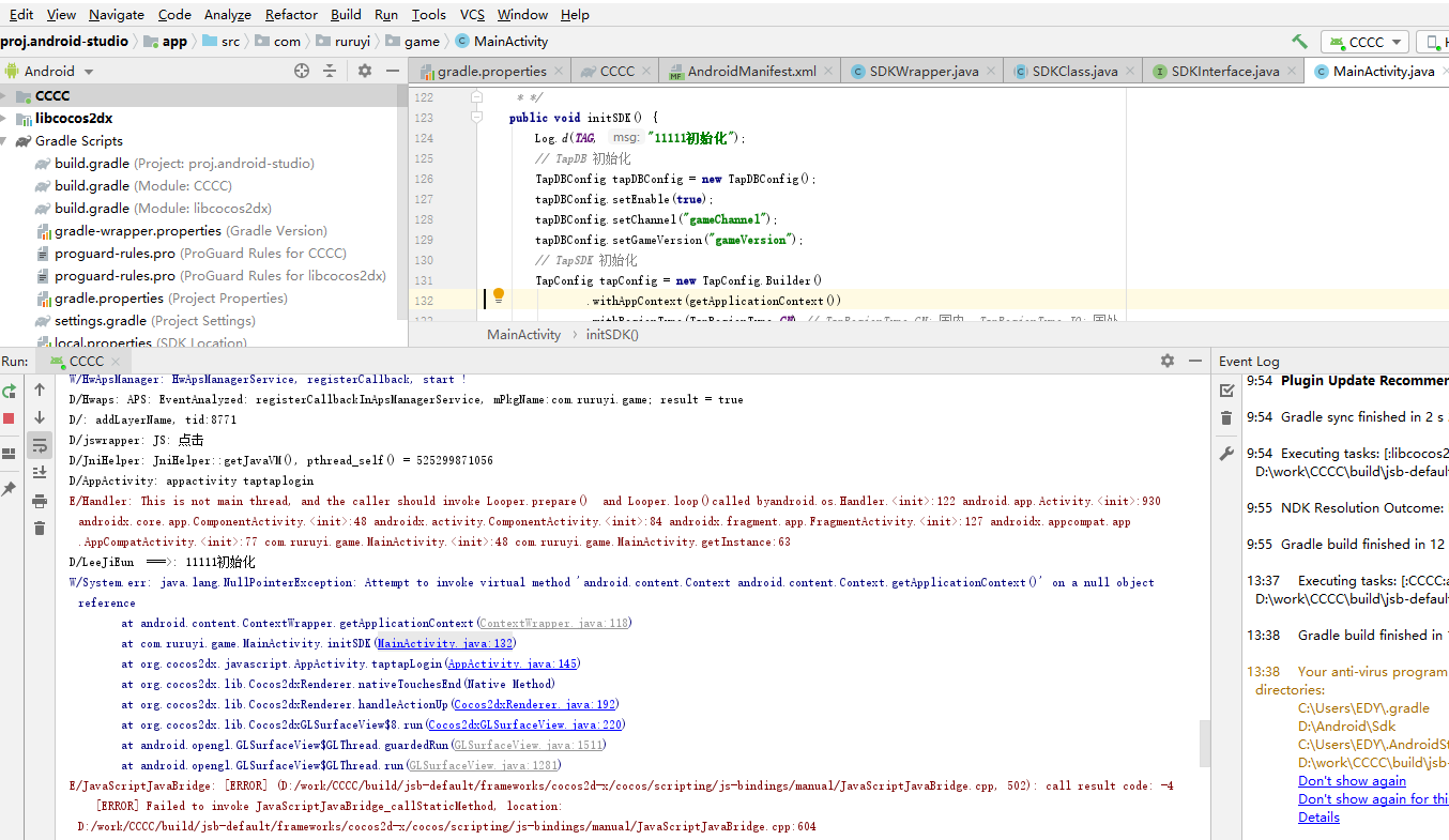之前是调不到taptaplogin 我定义单例类 调到了发现没有初始化,报错,后来单例类去初始化,初始化直接就失败了,withAppContext(getApplicationContext())到这就报错了