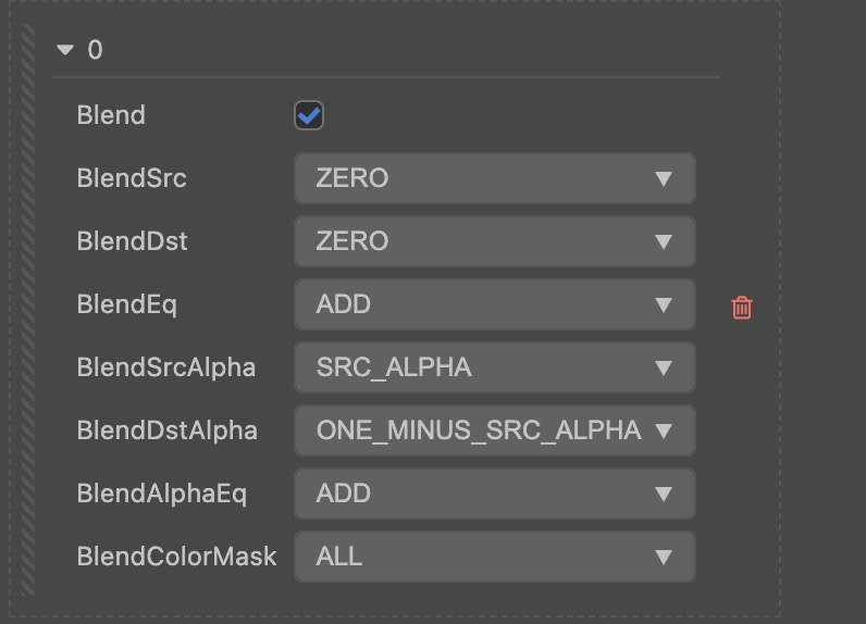 我发现blendSrc、blendDst居然影响的是alpha因子,BlendSrcAlpha与BlendDstAlpha都没有效果