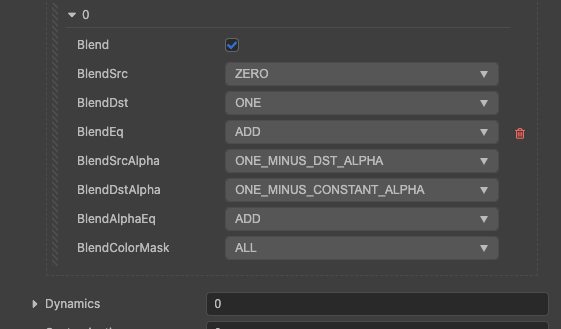 但是在编辑器中,我尝试的blendSrc和blendDst是src和dst的alpha通道,BlendSrcAlpha和blendDstAlpha调整起来没有任何效果