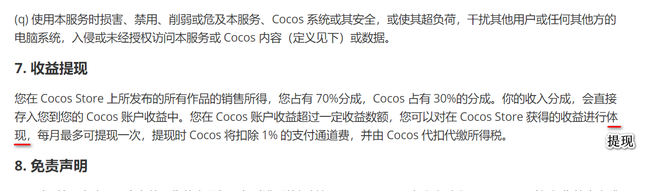 《Cocos Store 内容提交协议》有错别字
