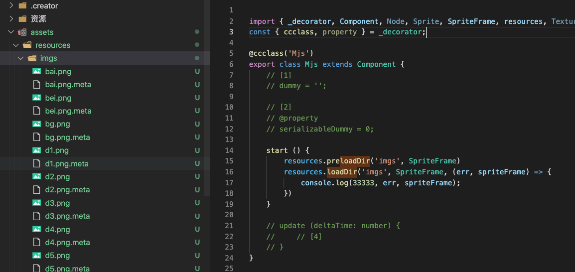 加载 SpriteFrame,image 是 ImageAsset,spriteFrame 是 image/spriteFrame,texture 是 image/texture