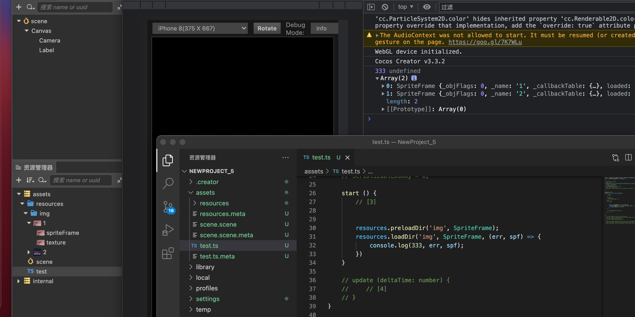 用cc.resources.load/loadDIr之类方法加载的资源必须放在resources目录下哦