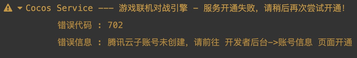 我想使用【游戏联机对战引擎】,一键开通以后,提示