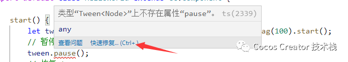 因为是自己扩展的方法,creator.d.ts 中没有相关声明,可以利用 vs code 来自动添加相关声明