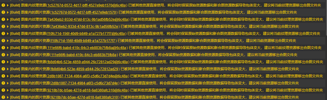 自动图集是不让用了吗?图集内的图片资源(xxxxxxx) 已被其他资源直接使用,将会保留原始资源数据和新合图资源数据导致包体变大,建议将当前资源移出合图文件夹