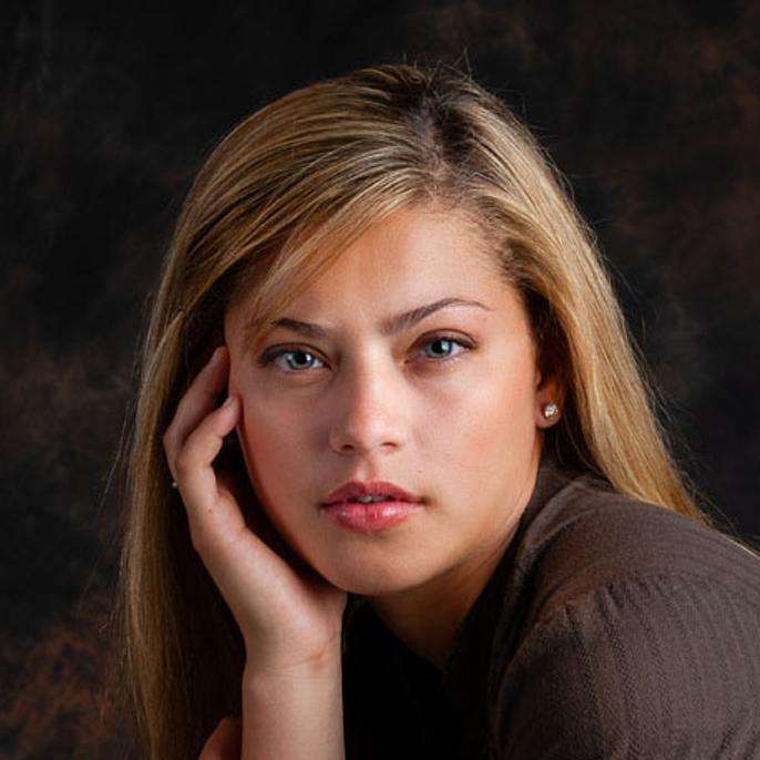 在上图中,我们同样能够在鼻梁的明暗交界线上观察到红色的色带,她的鼻梁的线条并不是特别陡峭,因此色带似乎也比上一个例子更宽一些。