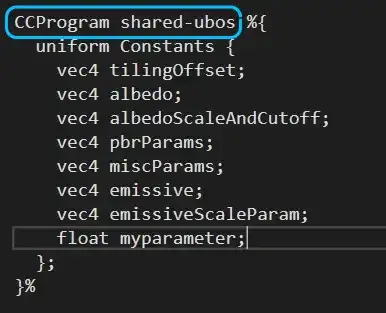 - 我们需要为新声明的参数声明一个相应的 uniform,这需要在“CCProgram shared-ubo”标签下实现,声明的 uniform 无论顶点着色器还是片元着色器都可以访问;