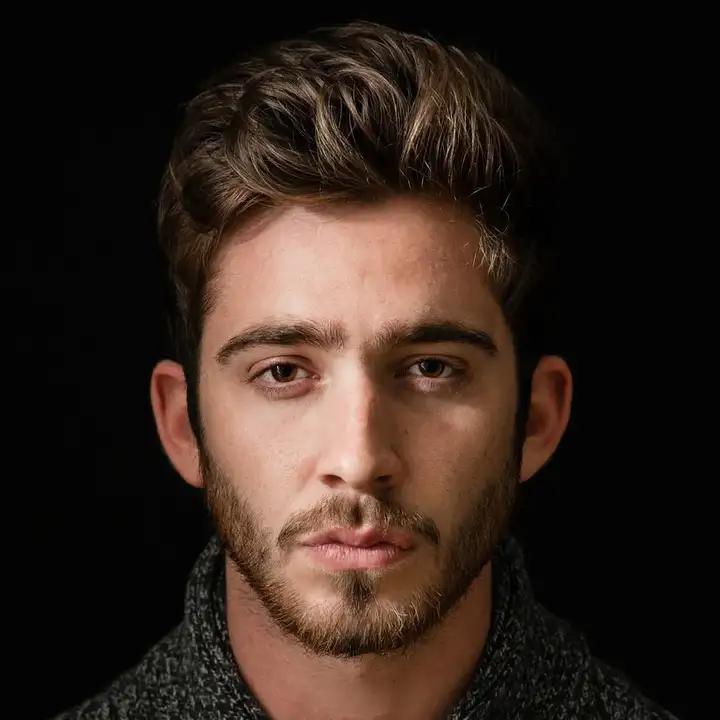 而在这个例子当中,我们可以在他的脸颊明暗交界线的位置看到大面积的粉红色聚集(至于为什么是粉红色,是因为这张照片在后期调色中混入了冷色调的缘故)。而这种粉红色在他鼻梁线条锋利的部分同样可以看到。
