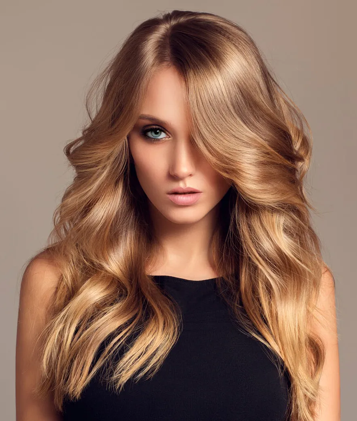 观察上图,首先抓住人眼球的无疑是她头发上长条状的高光,进一步细看,我们可以注意到长条状的高光有两种颜色变化:一种是我们熟悉的偏白色高光颜色,强度也略高;另一种则是比头发固有色明度和饱和度略高的高光颜色。