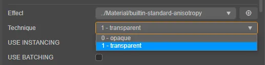 新建一个材质,赋予我们的各向异性着色器。将 Technique 设为 1-transparent。
