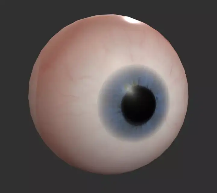 首先我们需要了解的是:眼球不是一个正球形,在虹膜的正前方位置有一个圆形的突起。这是因为虹膜正前方有一个液泡的结构,而整个眼球又包裹在透明的巩膜里,所以眼球是一个整体流线型、在正前方有小突起的球体。这些细节,美术的同学会进行表现。