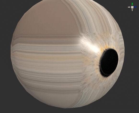 我们可以用之前的缩放归一后的 UV 得到有视差效果的虹膜 UV,用这套新 UV 赋予我们的虹膜贴图,得到的结果应该类似下图: