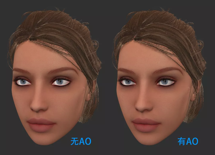 增加了 AO 之后,我们角色的眼神柔和了许多,眼球和眼眶的衔接也更自然了。