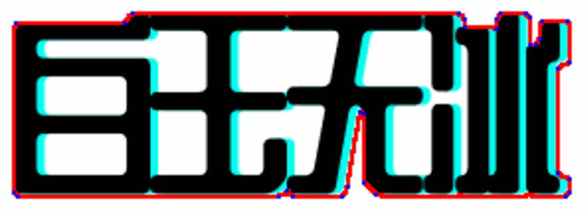 计算围成轮廓的像素点(【逆时针:箭头方向的左侧必须有像素,箭头方向的右侧必须不能有像素】,算法应该是叫做Marching_squares,也可以参考cocos2d-x中的代码CCAutoPolygon.cpp
