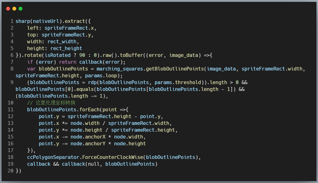 Cocos Creator编辑中,多边形碰撞组件中有一个Regenerate Points的功能,这个功能可以根据组件依附的节点上的Sprite组件的贴图的像素点来自动生成相应轮廓的顶点。Threshold指明生成贴图轮廓顶点间的最小距离,值越大则生成的点越少。
