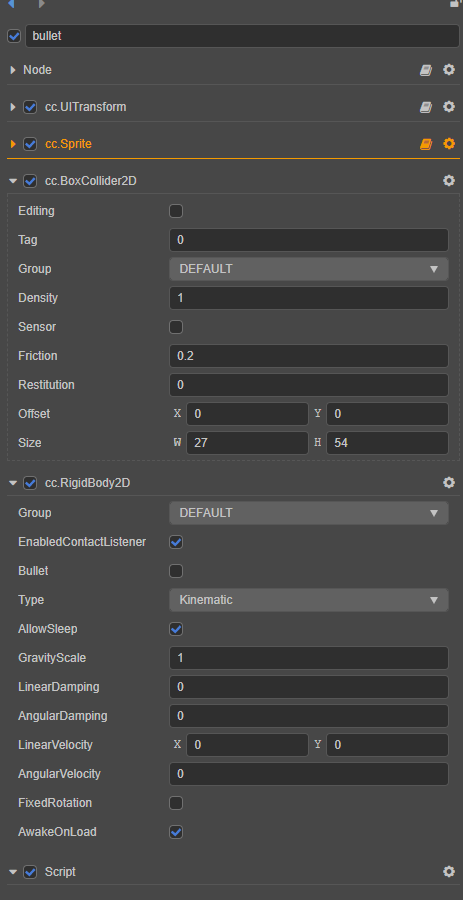子弹碰到上方物体,子弹消失。 - 两个sprite的属性