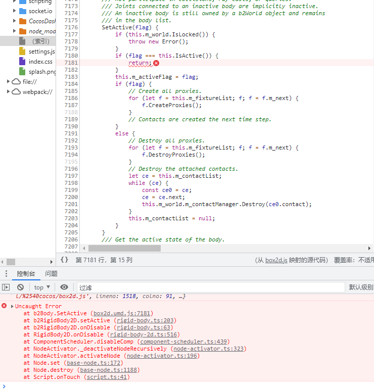 一层一层调试进入后,在设置组件rigidbody2D的时候报错,截图如下: