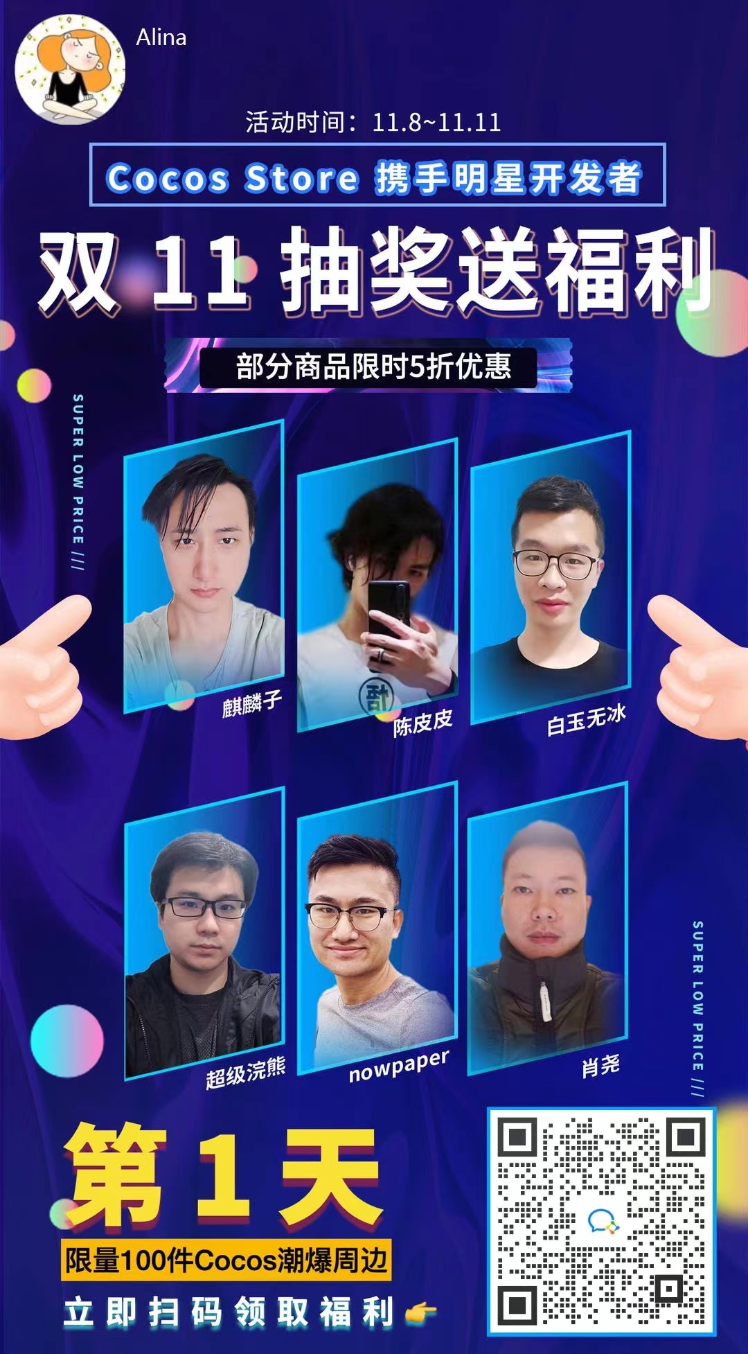 双11活动来了,Cocos社区天天送礼品,需要快来薅羊毛!不要说我没告诉你