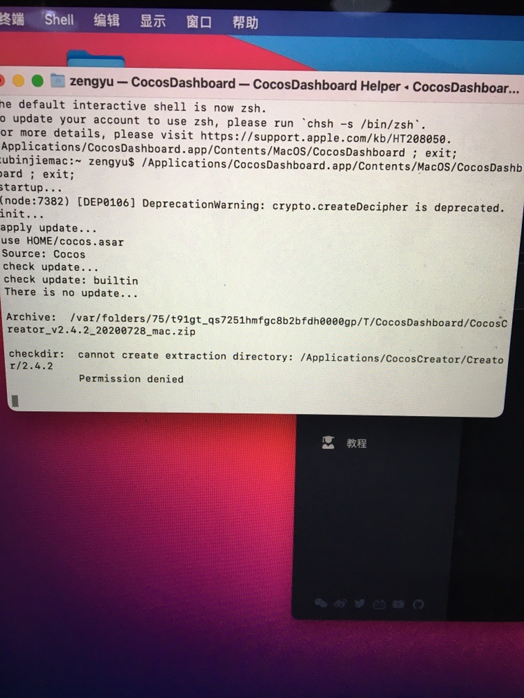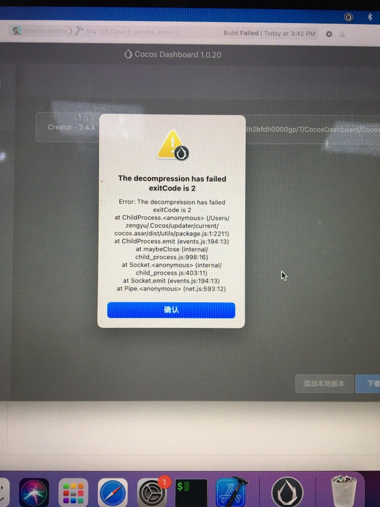 这个是使用 dashboard 弹窗选择的手动解压,目录选择的是应用程序,报错信息。