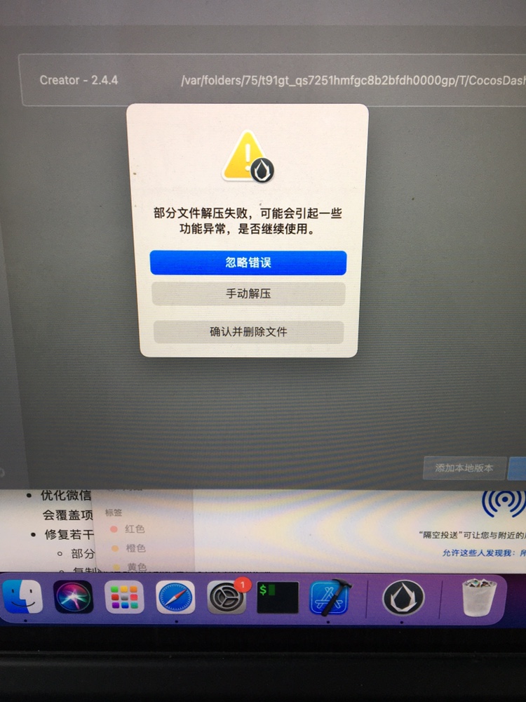 重现方式:在 Dashboard 内下载 2.4.4 版本的Creator,下载完成后解压报错