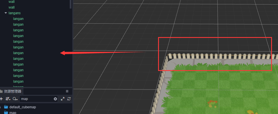 这些围栏,我是用静态合批,合到他们的父节点langans,然后整个地图用对象池回收,