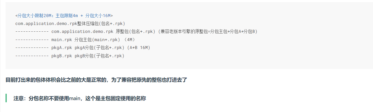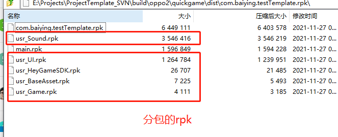 正常的,一个大文件com.xxx.rpk是未分包的游戏包体,用于适配不支持分包加载的旧平台,其它文件是正常的分包文件。