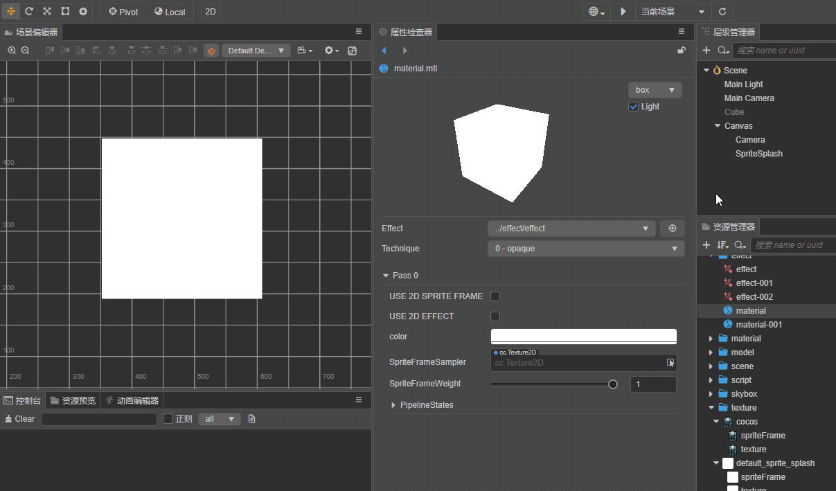 在CocosCreator 2D对像(比如Sprite对象)下使用自定义材质时