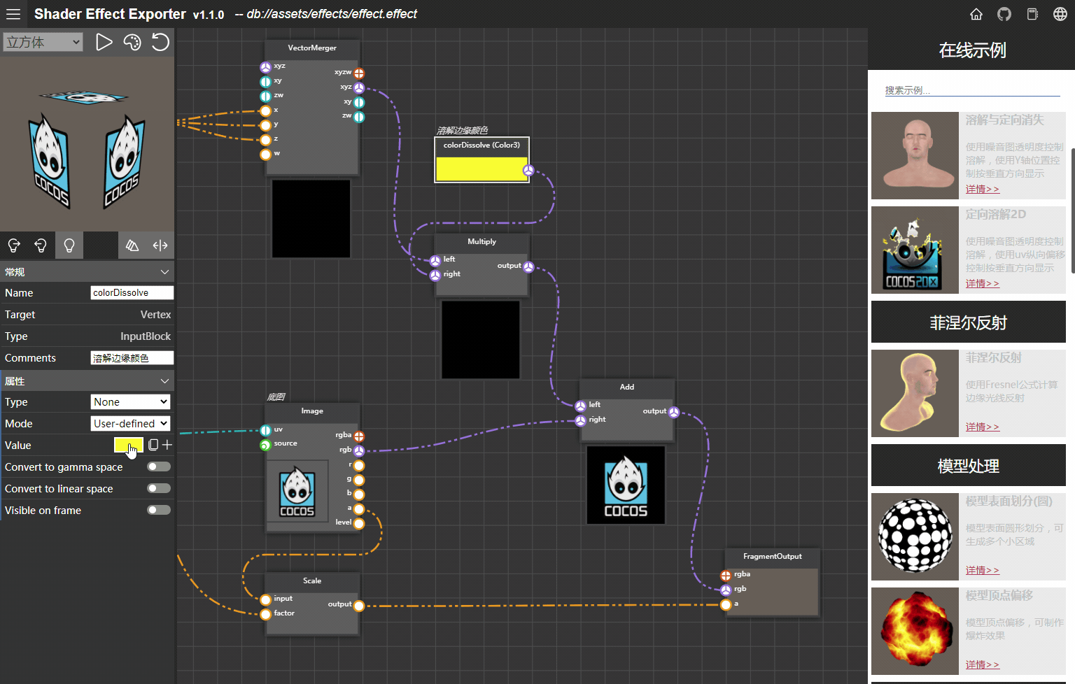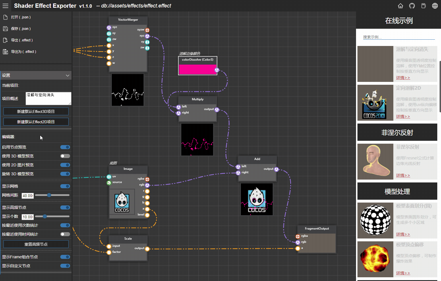 这是一款为 CocosCreator 深度定制的 Shader Effect 编辑器插件