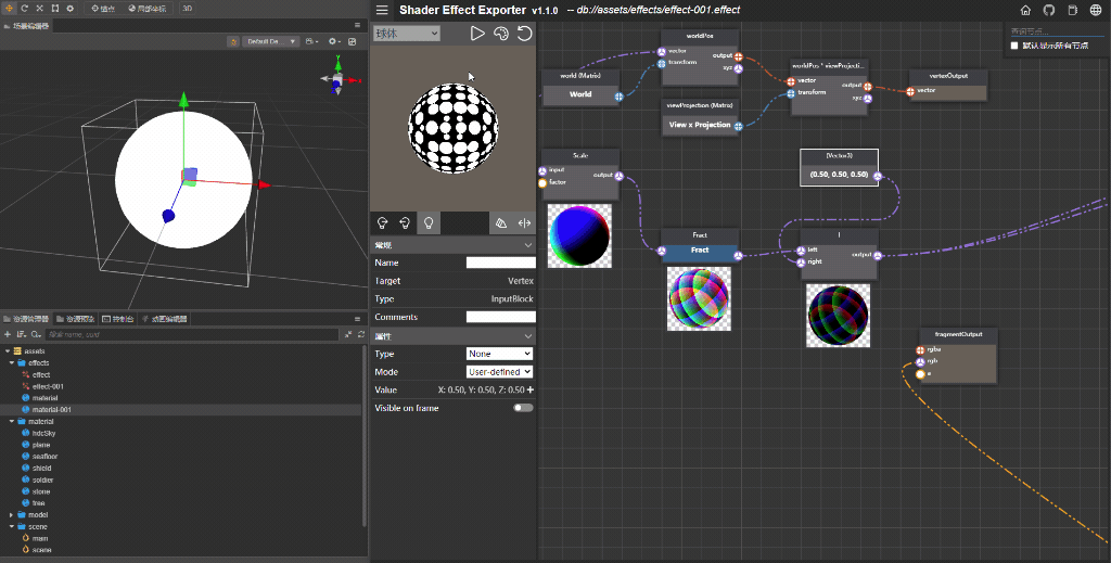 material、effect文件,可实时保存到effect文件并生效预览 -