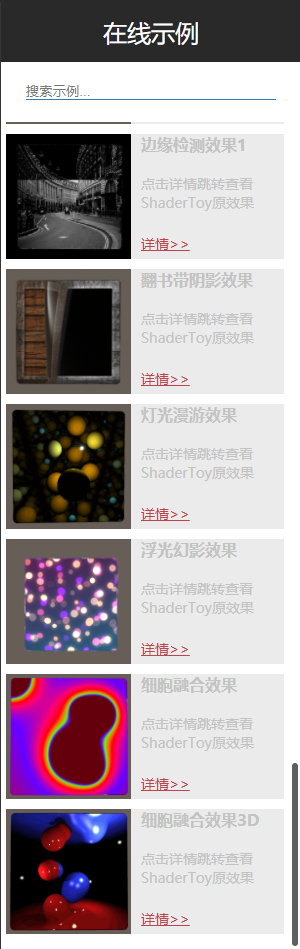 Effect Exporter 提供了完整的在线示例,可以很方便的浏览效果并一健导入: