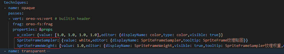 片元着色器加了个TextureBlock类型的贴图节点 SpriteFrame,方便控制 2D 纹理对应到 effect 文件,每个纹理输出都由一张纹理贴图和一个纹理权重控制: