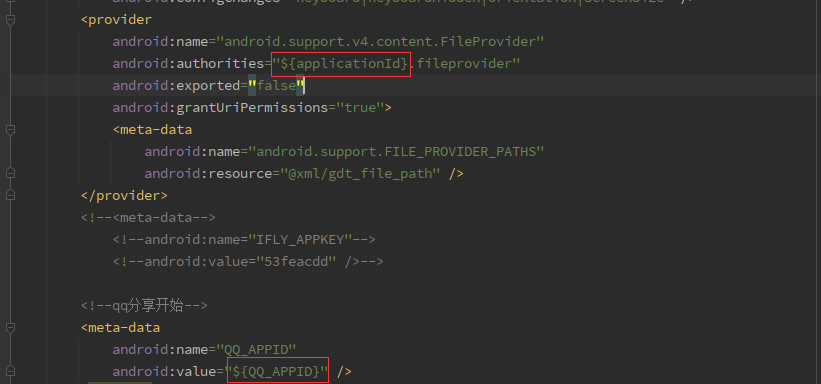 就是AndroidManifest.xml中的占位符,使用${xxx} 来占位