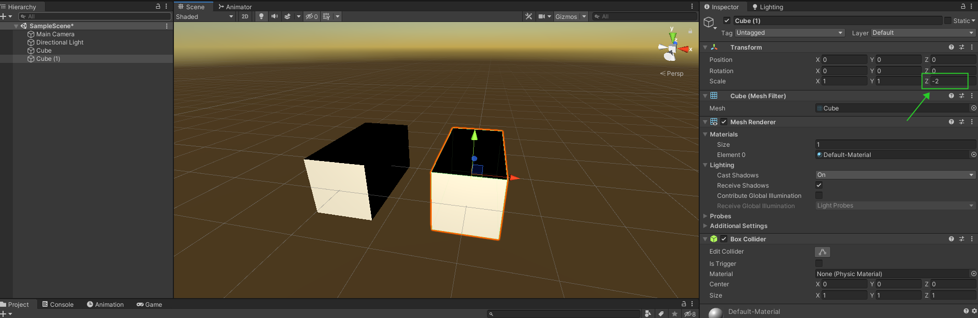 而且模型带这个负的scale,到时BoxCollider之类的碰撞也容易出问题,一般是不太建议这么做的。