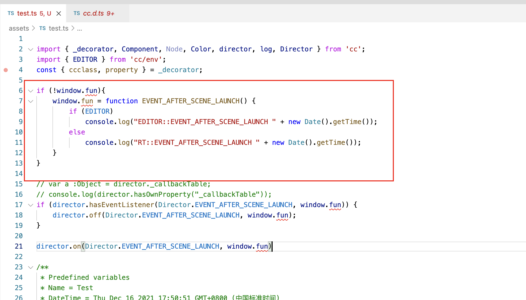 重现方式:在任意文件顶层 先后执行 director.off/on 同一个方法,在编辑器环境内,这个监听会并不会只保持一个,而是每刷新一次编辑就多一个,相同的操作 game 好像没有问题。运行环境无此问题。