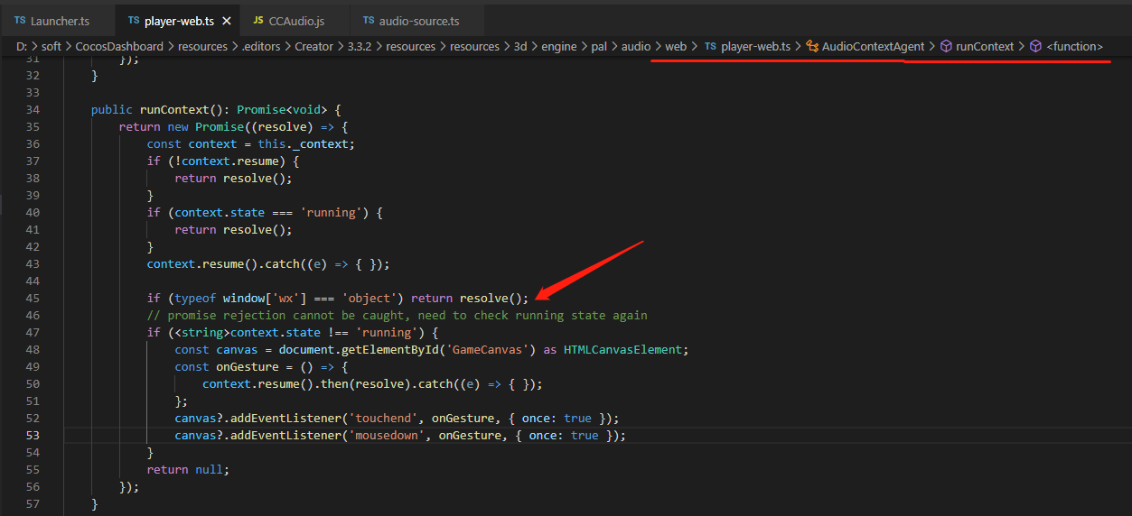 - 修改runContext函数,添加微信环境判定,并直接返回resolve